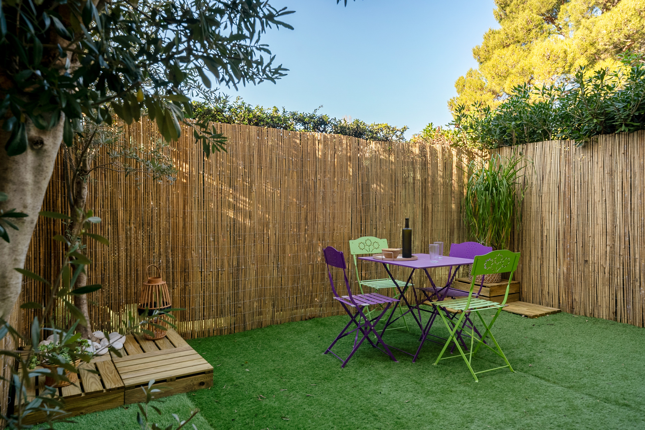 Terrasse plein sud avec mobilier d'extérieur nécessaire.
