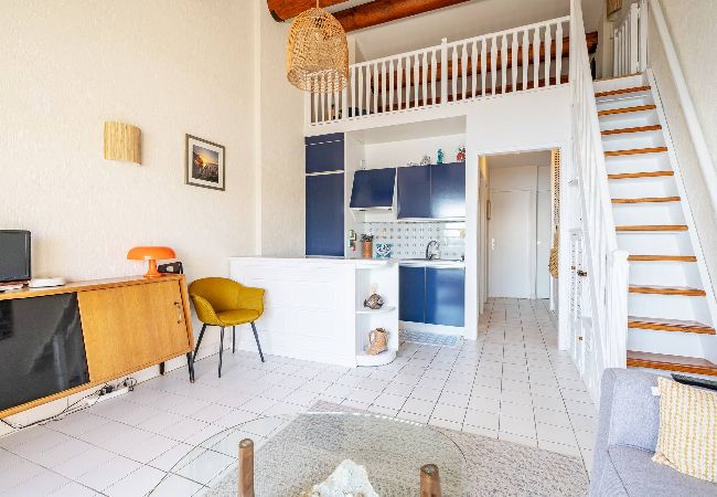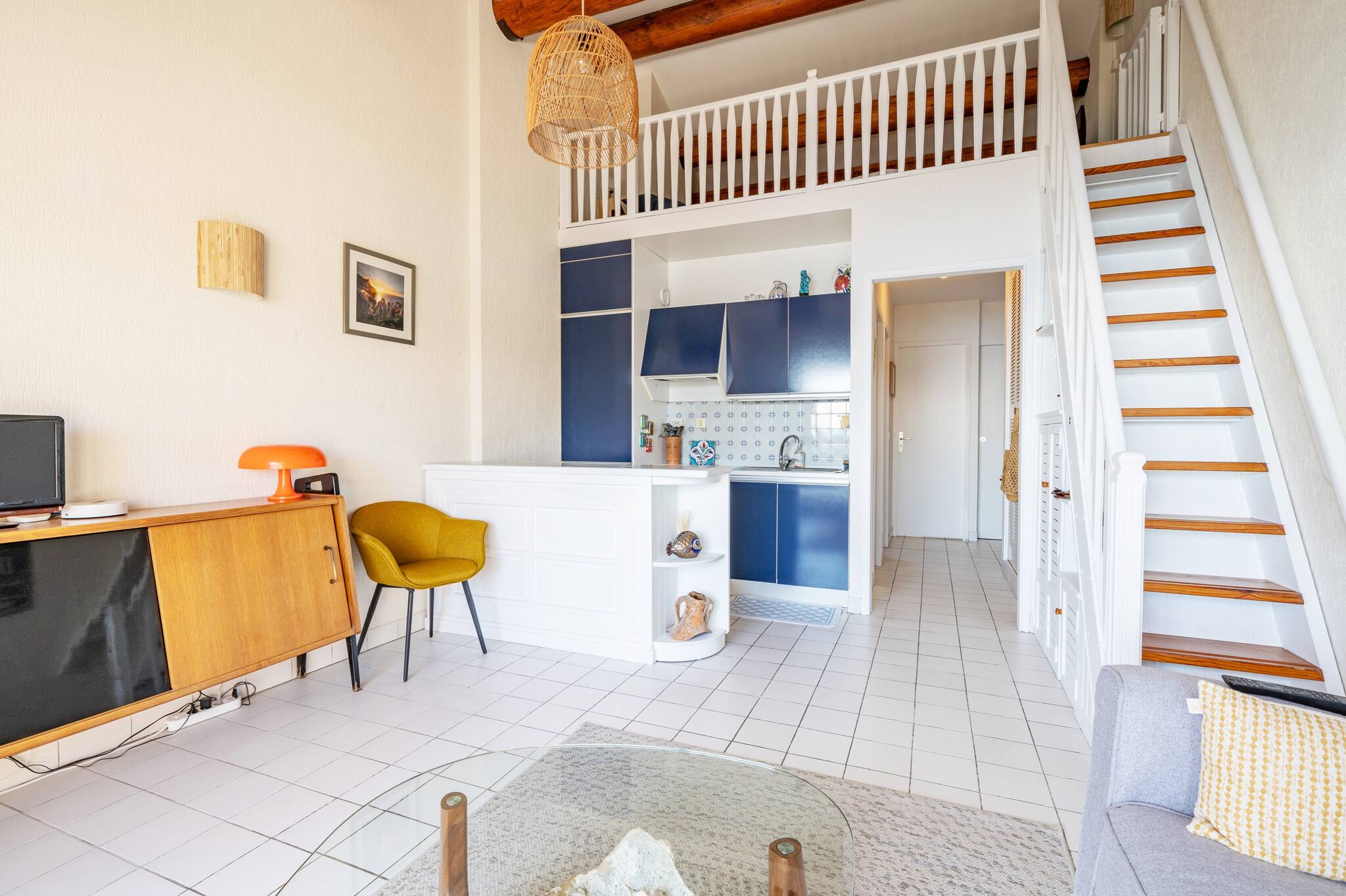 Calme et élégant, appartement de 40 m2 (+ mezzanine 9 m2 et terrasse 9 m2) comprenant :