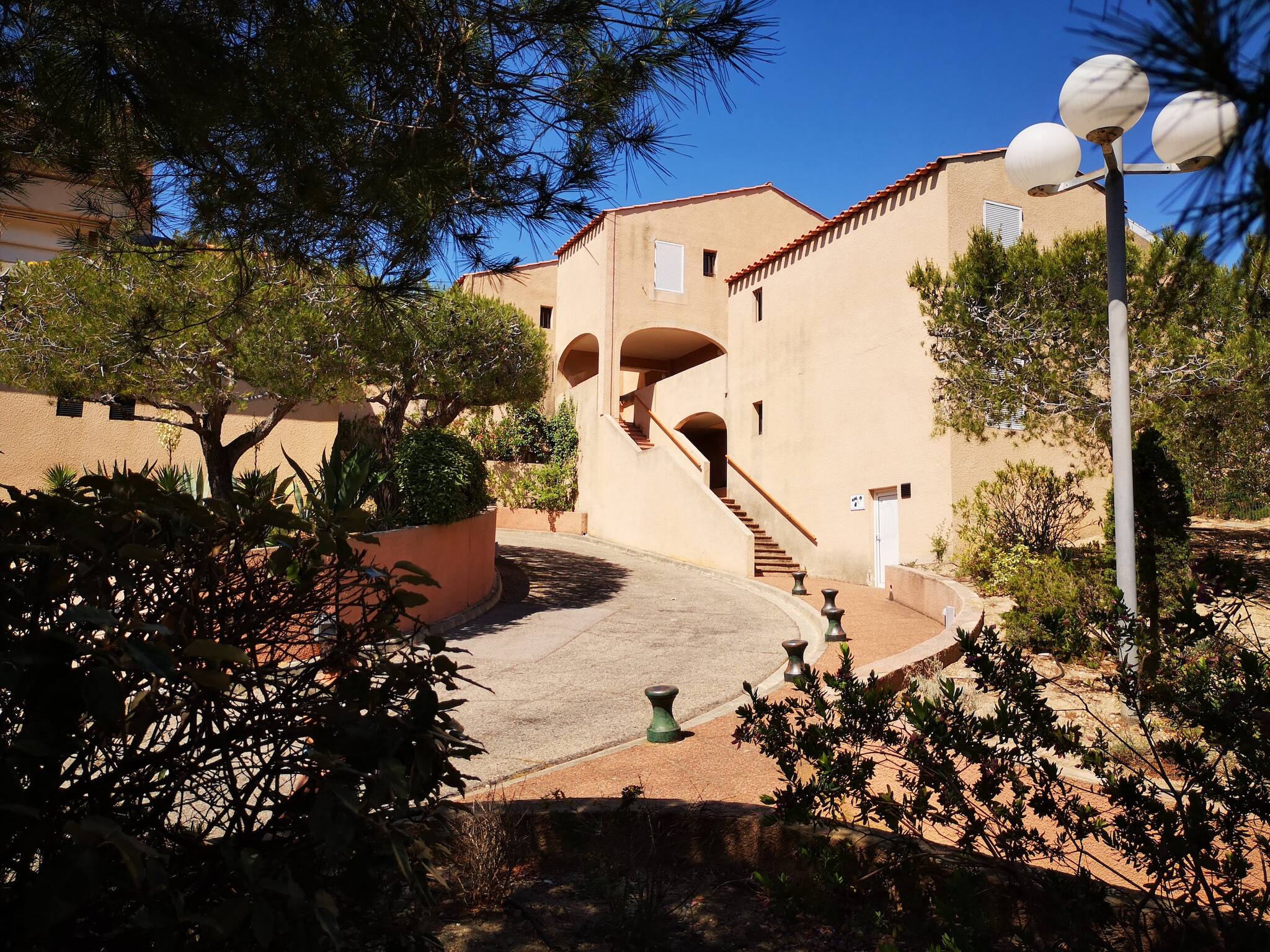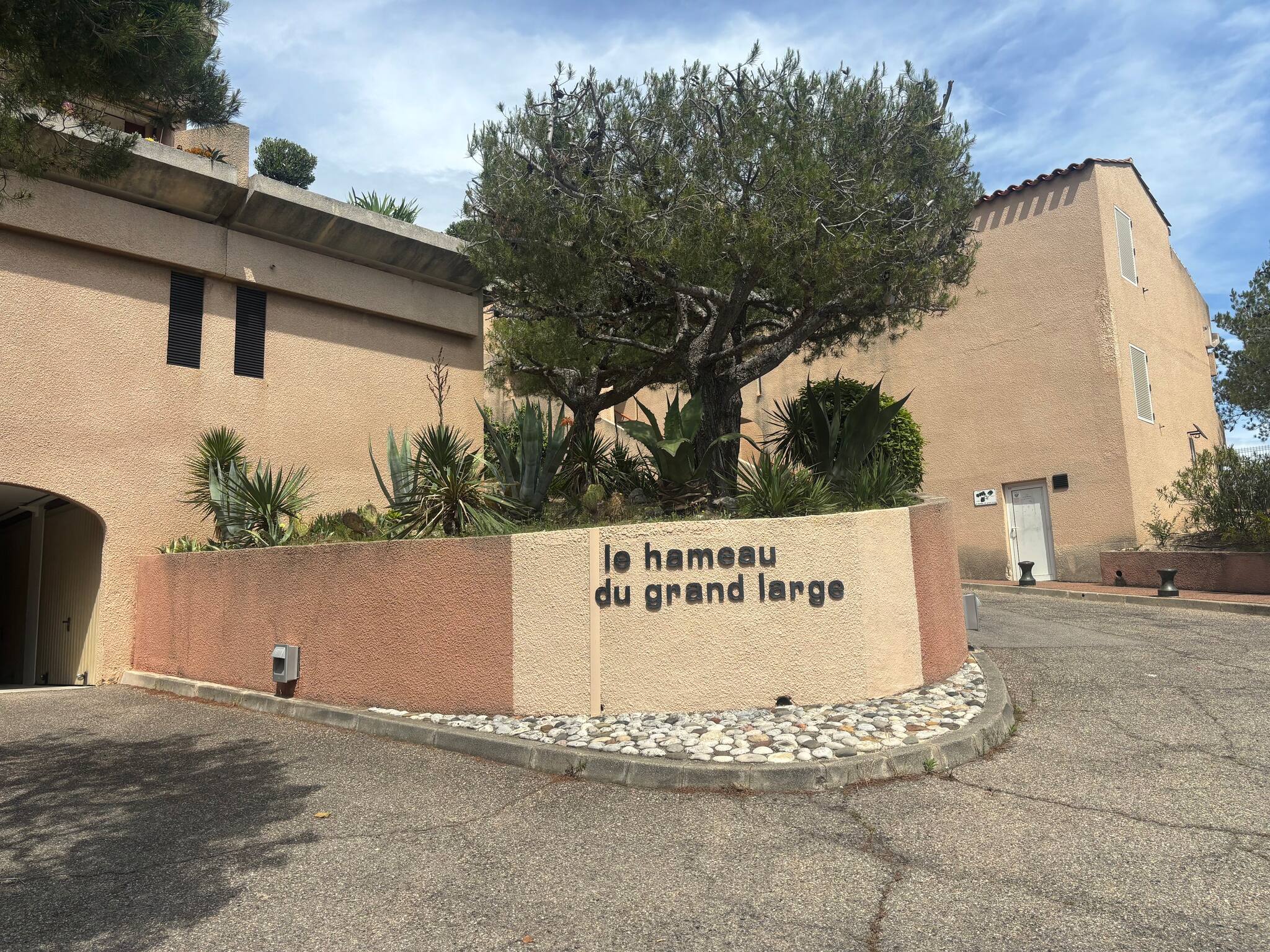 Place de parking et terrain de pétanque dans la copropriété.