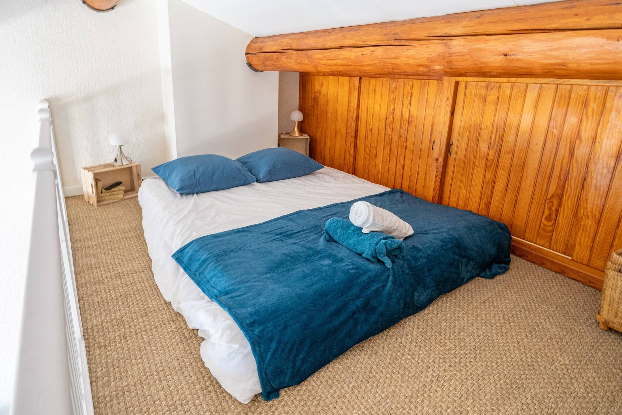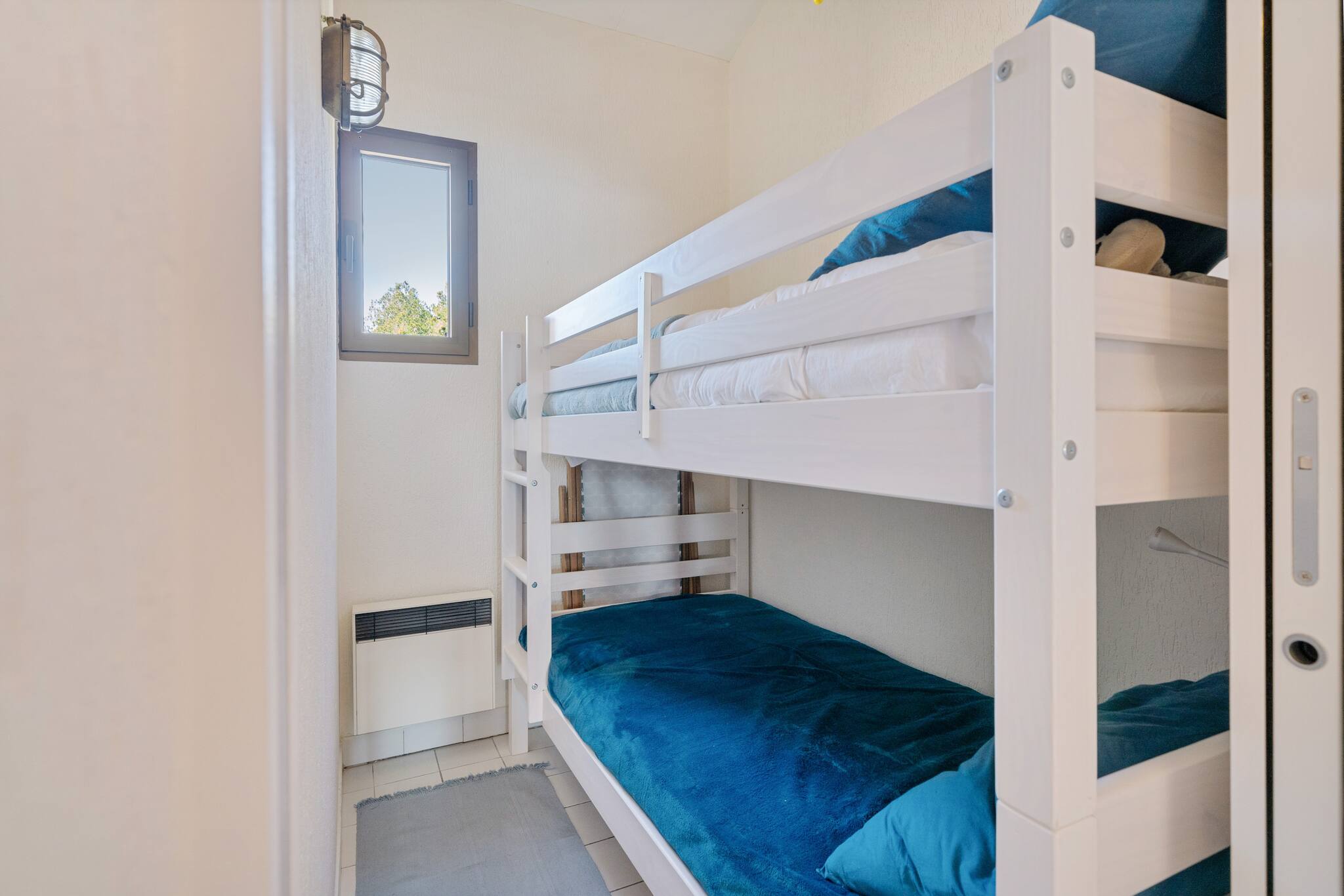 Pièce de vie avec cuisine, 2 chambres (1 lit double et 2 lits simples superposés), 1 mezzanine avec lit double, salle de bains, w.c.