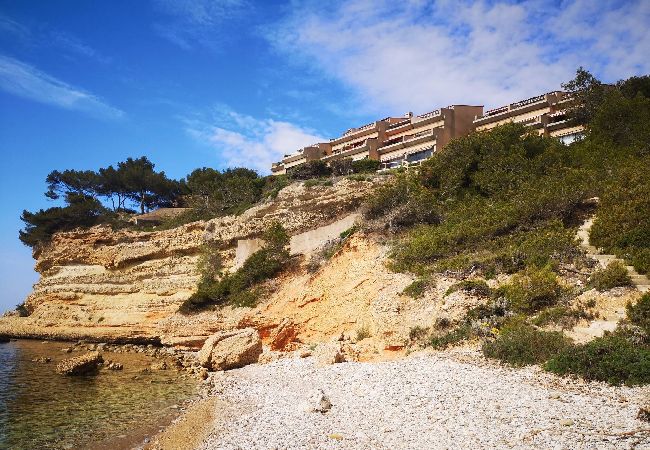 Le logement est idéalement situé devant la mer, à côté de la plage du Rouet et à 20min à pied du centre ville de Carry-Le-Rouet .