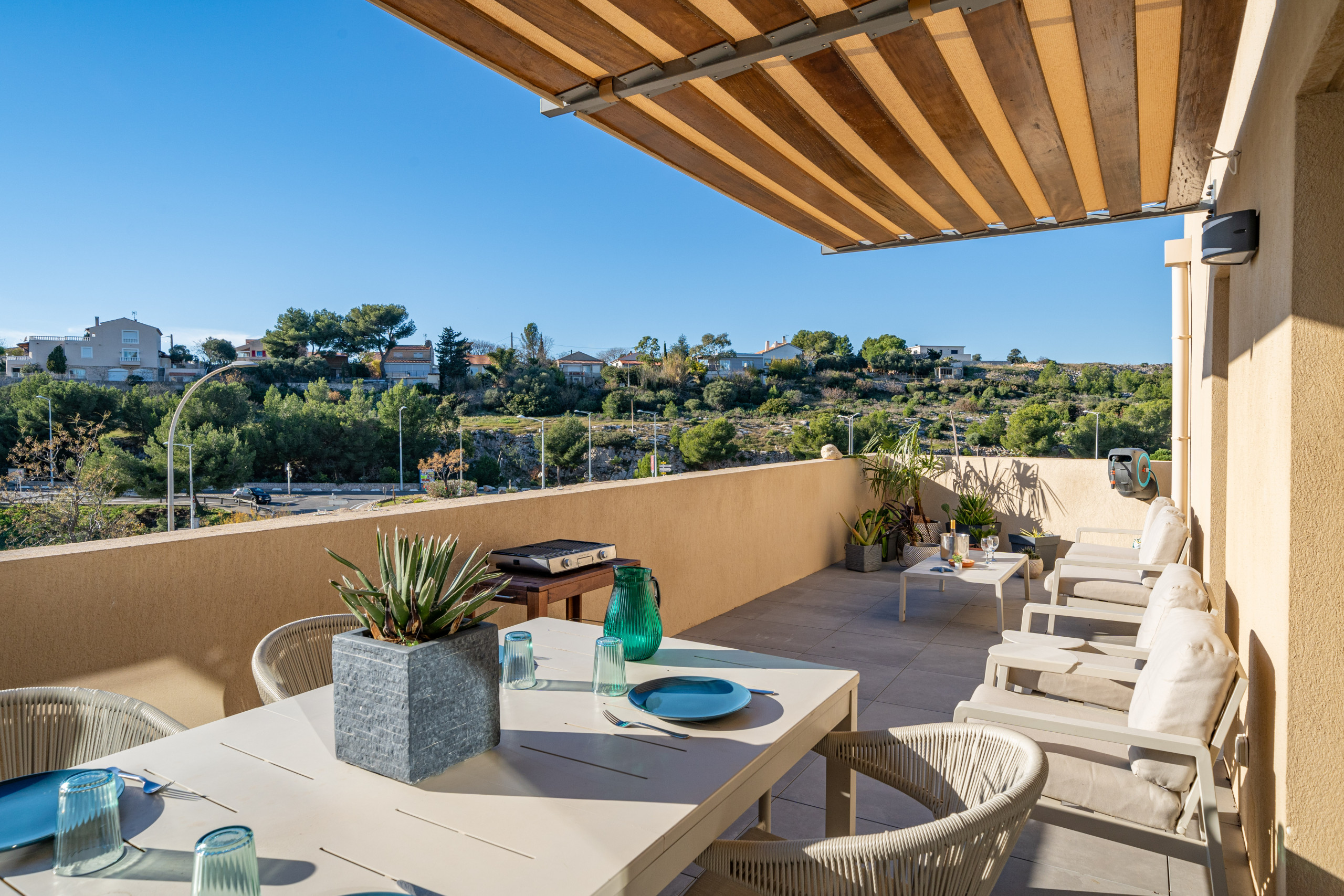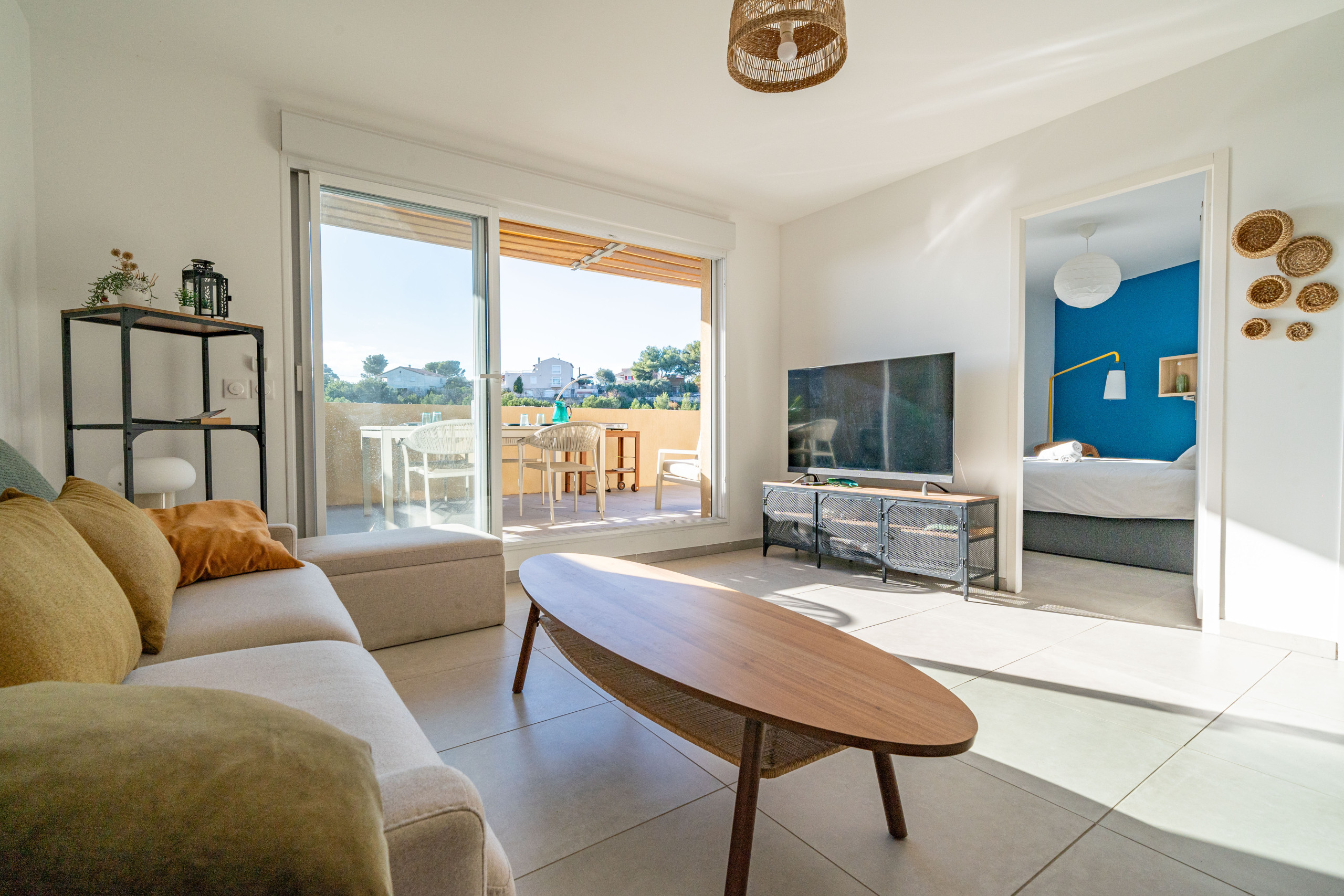 Idéalement situé entre le village de La Couronne et la plage du Verdon, ce logement neuf et entièrement climatisé vous offre un cadre parfait pour un séjour sans voiture. Profitez d’une terrasse plein sud avec salon extérieur et plancha électrique pour des moments de détente. L’appartement dispose d’une cuisine équipée, du Wi-Fi et d’une TV pour votre confort.