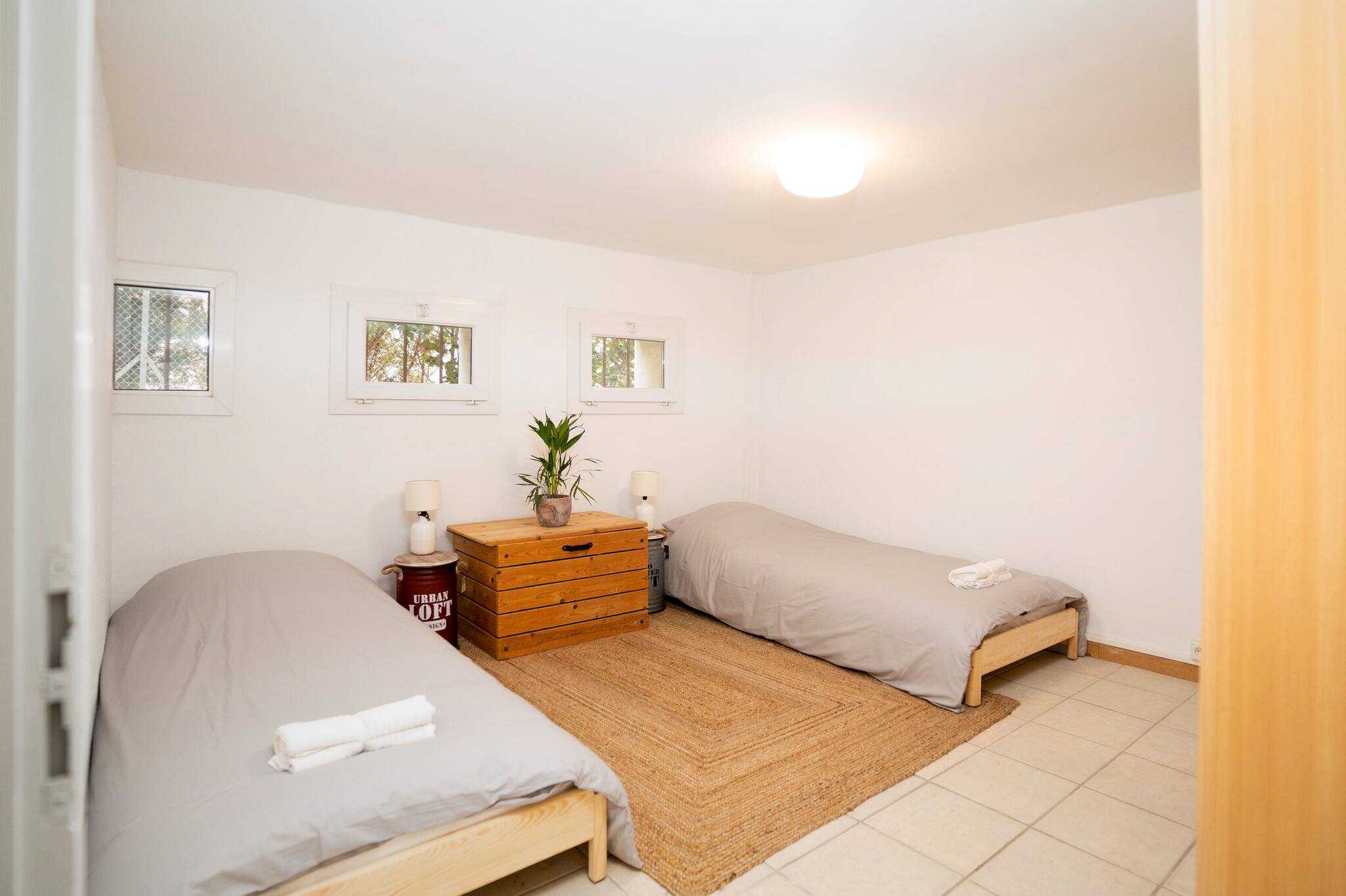 3 chambres avec lits doubles en 160, une chambre double avec lit en 140, et une chambre avec deux lits simples. Possibilité de loger deux personnes supplémentaires dans un canapé lit.