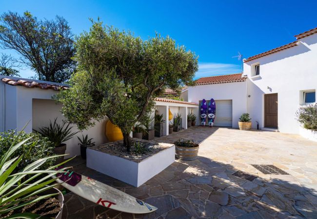 Villa de 240m2 sur 2 étages / 10 couchages avec grande piscine, accès direct à la plage.