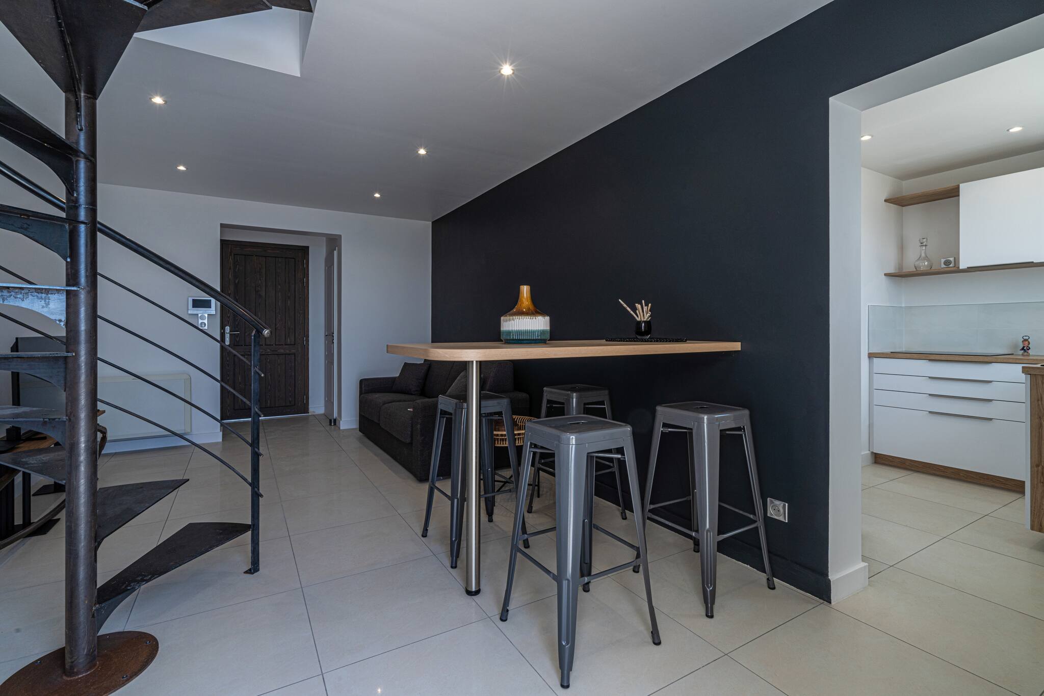 RDC : Espace Salon , cuisine , cheminée , et salle de repos.