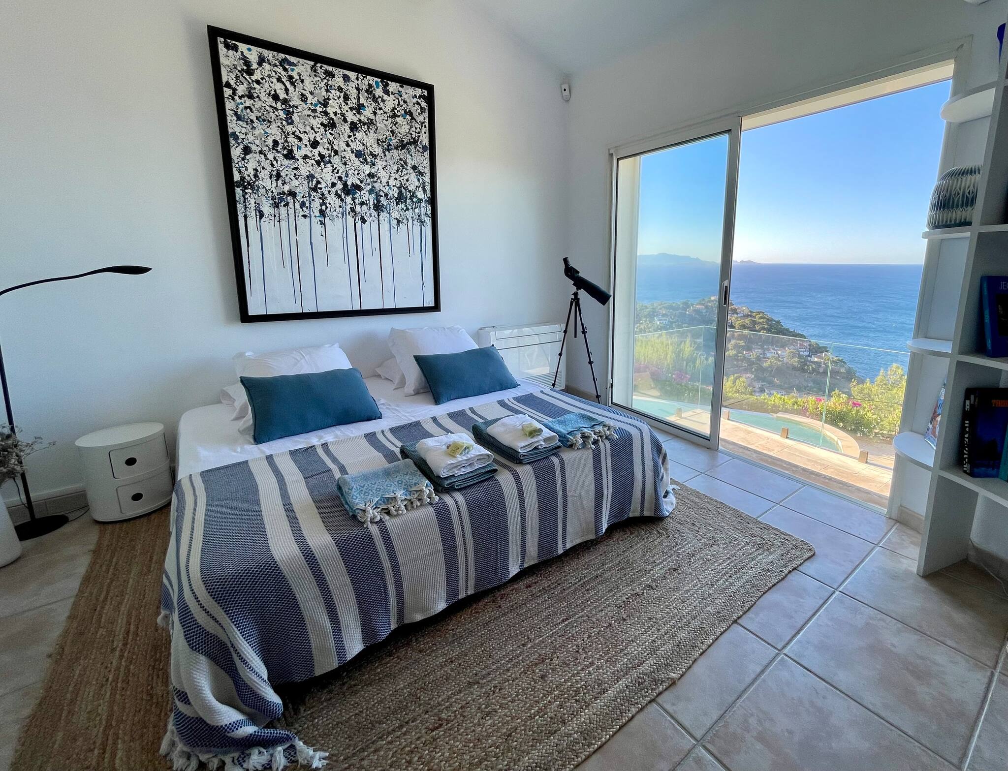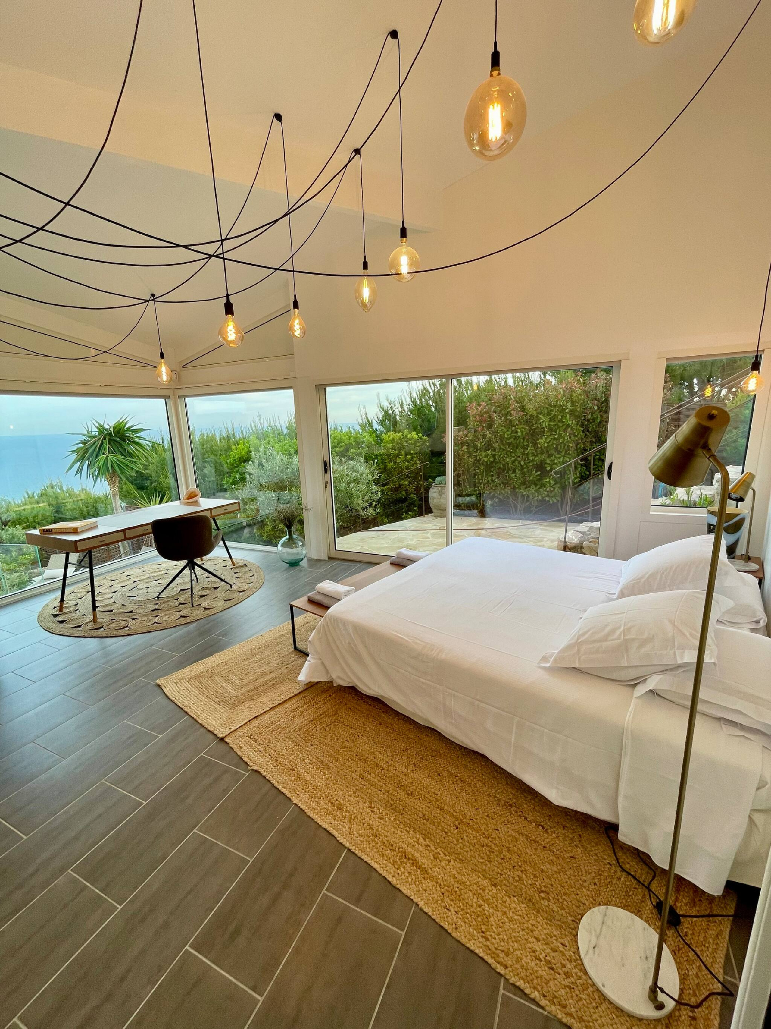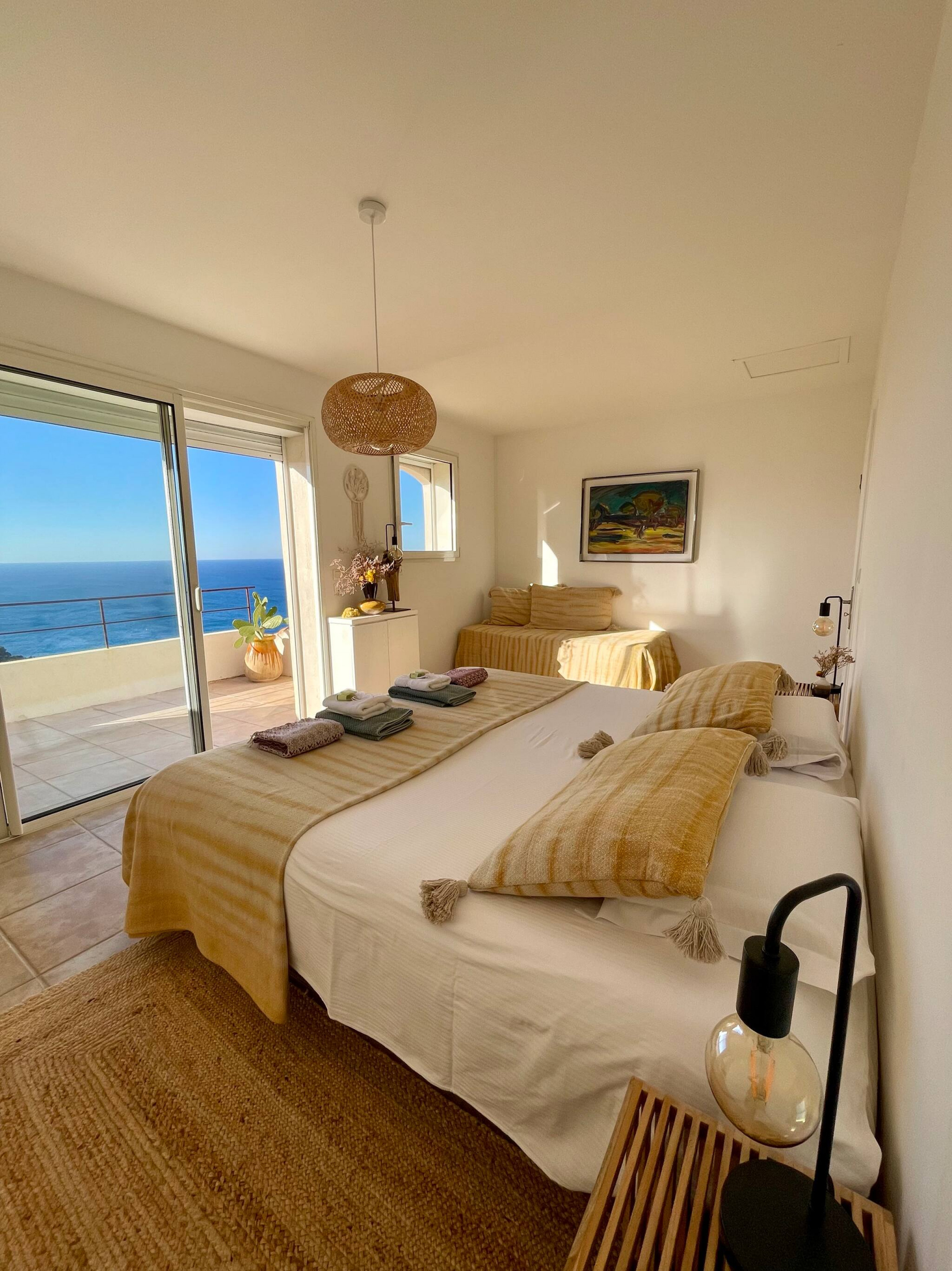 Toutes les pièces sont climatisées. 3 chambres avec 3 salles de bains vue mer. 1 Studio indépendant avec douche et cuisine , vue mer.
